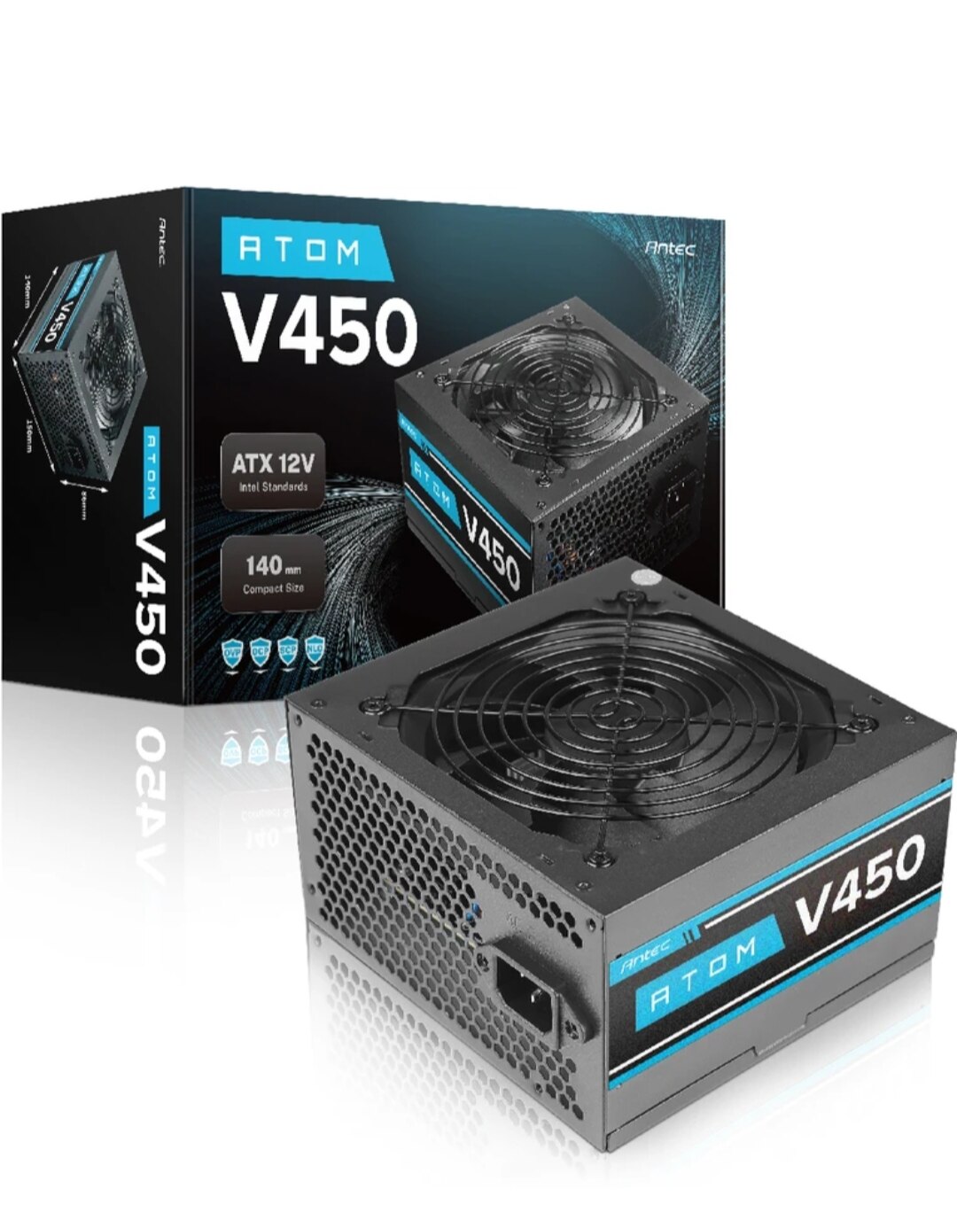 Antec Atom V450 450 Watts Gaming PSU with 3 SATA Cables (Black)